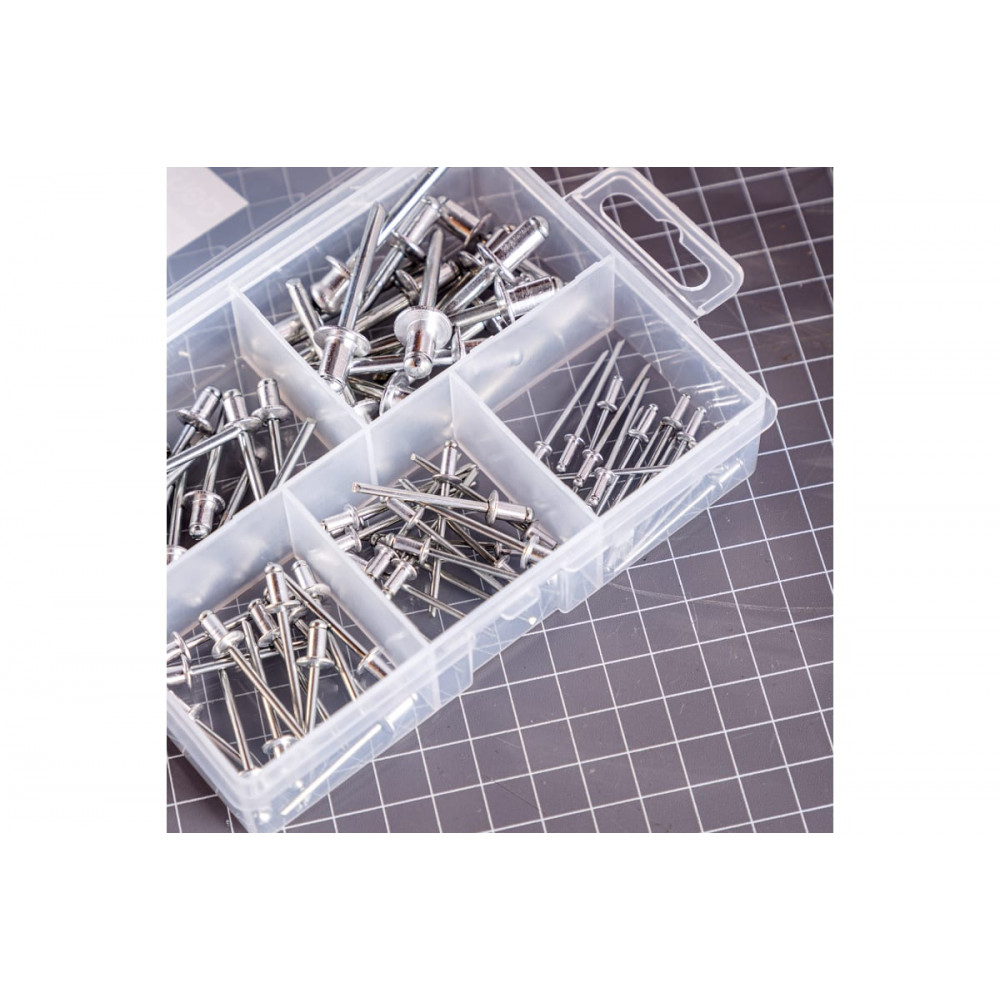 Набор DL236906 станет незаменимым помощником для тех, кто занимается ремонтом, строительством или изготовлением мебели. Благодаря разнообразию размеров заклепок, вы сможете подобрать наиболее подходящий вариант для каждого конкретного случая.