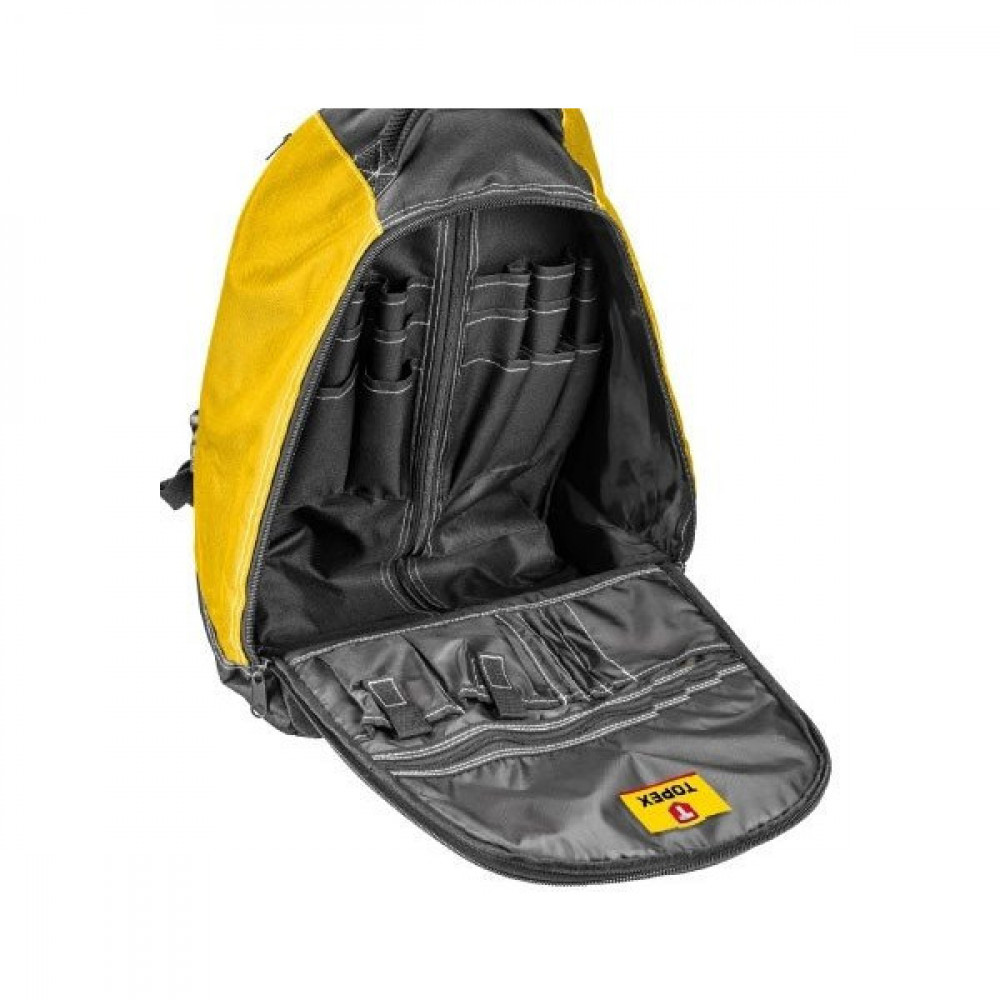 Рюкзак для инструмента Topex (арт. 79R450) изготовлен из прочного полиэстера, что гарантирует долговечность сумки. Оснащен 25 внутренними карманами для удобного хранения и транспортировки. Рюкзак снабжен колесами и телескопической ручкой с замком, что облегчит транспортировку тяжелых инструментов. Для удобства рюкзак также имеет регулируемые лямки.