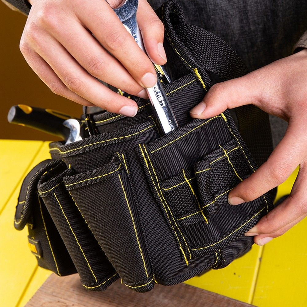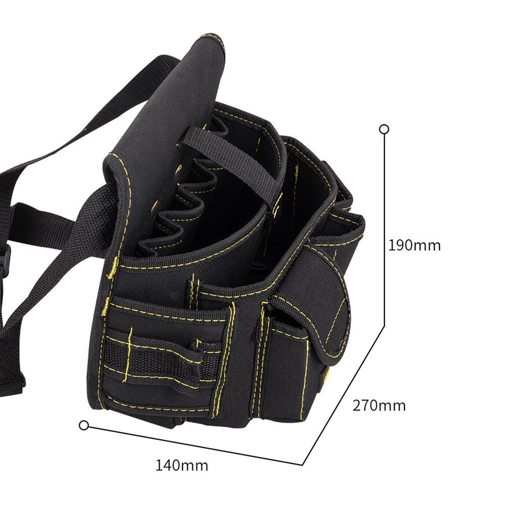 Поясная сумка для инструментов монтажника и электрика Deli DL-P5 предназначена для хранения и удобной переноски инструментов во время проведения строительных и электромонтажных работ. Сумка изготовлена из прочной и износостойкой ткани Oxford 600D, устойчивой к повреждениям и истиранию. Благодаря использованию материала EVA сумка обладает влагоотталкивающим свойством и повышенной прочностью.