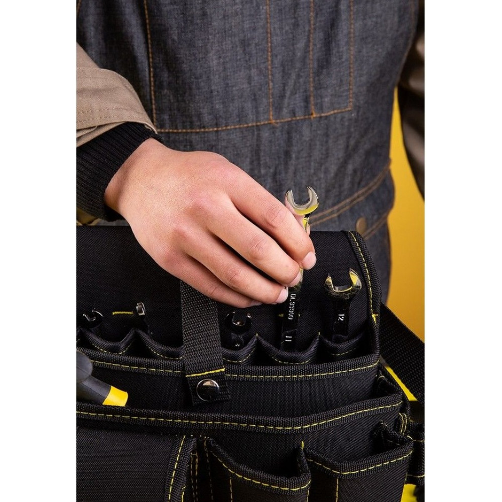 - Практичность и универсальность: сумка подходит для хранения различных видов инструментов, включая отвертки, гаечные ключи, сверла и буры.