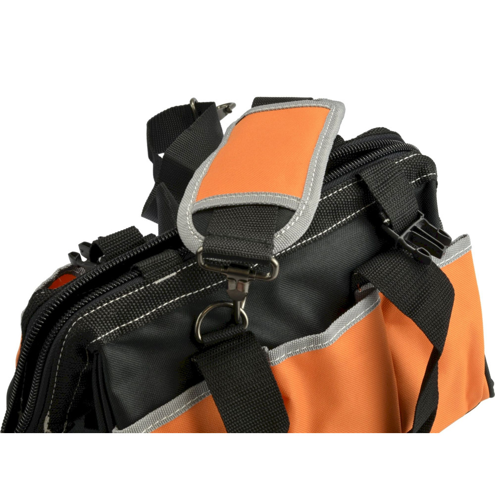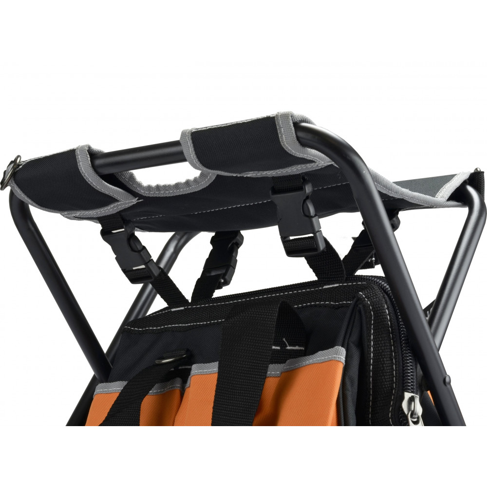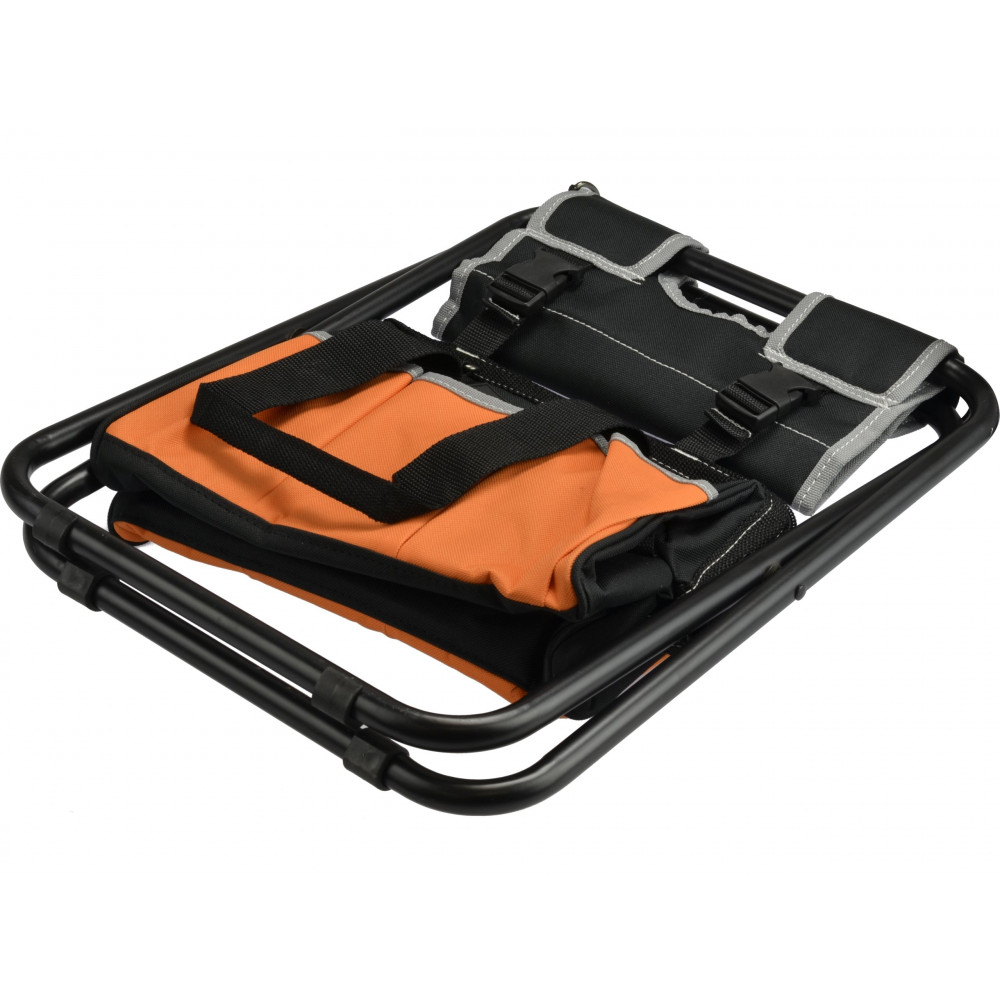 В тяжелых условиях рабочей площадки решением проблемы станет складной табурет с монтерской сумкой 84-306 от бренда NEO. Материал изготовления – твердый полиэстер 600 D, обеспечивающий долгий срок службы изделия. Для удобной транспортировки табурета предусмотрен регулируемый плечевой ремень и ручка. Аккуратно разместить все нужные принадлежности позволяет большое внутреннее отделение и шесть наружных. Бренд NEO никогда не подводит мастеров и специалистов.