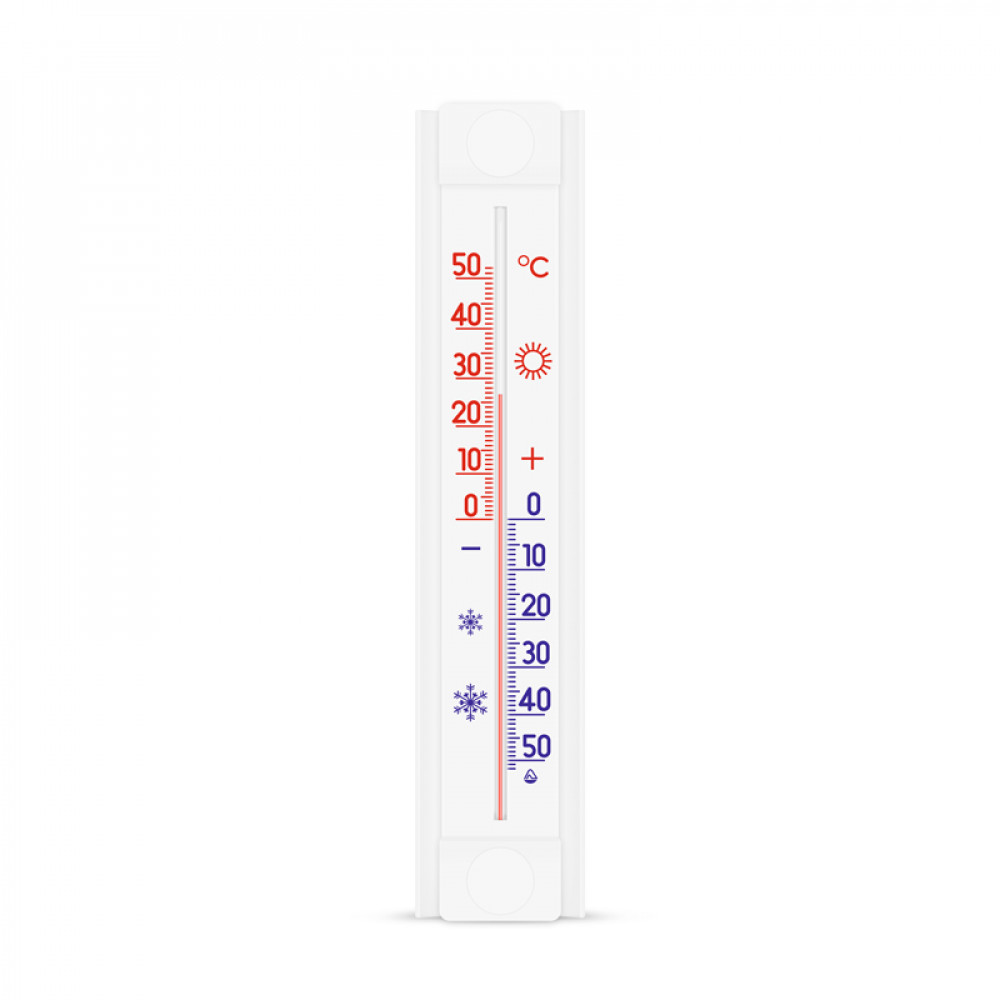 Термометр оконный "Солнечный зонтик", крепится к стеклу на две акриловые липучки.Оснащен защитной планкой, толщиной 2 мм, которая защищает капилляр от попадания прямых солнечных лучей. Таким образом, показания будут максимально точными, независимо от того теневая сторона у дома или солнечная.