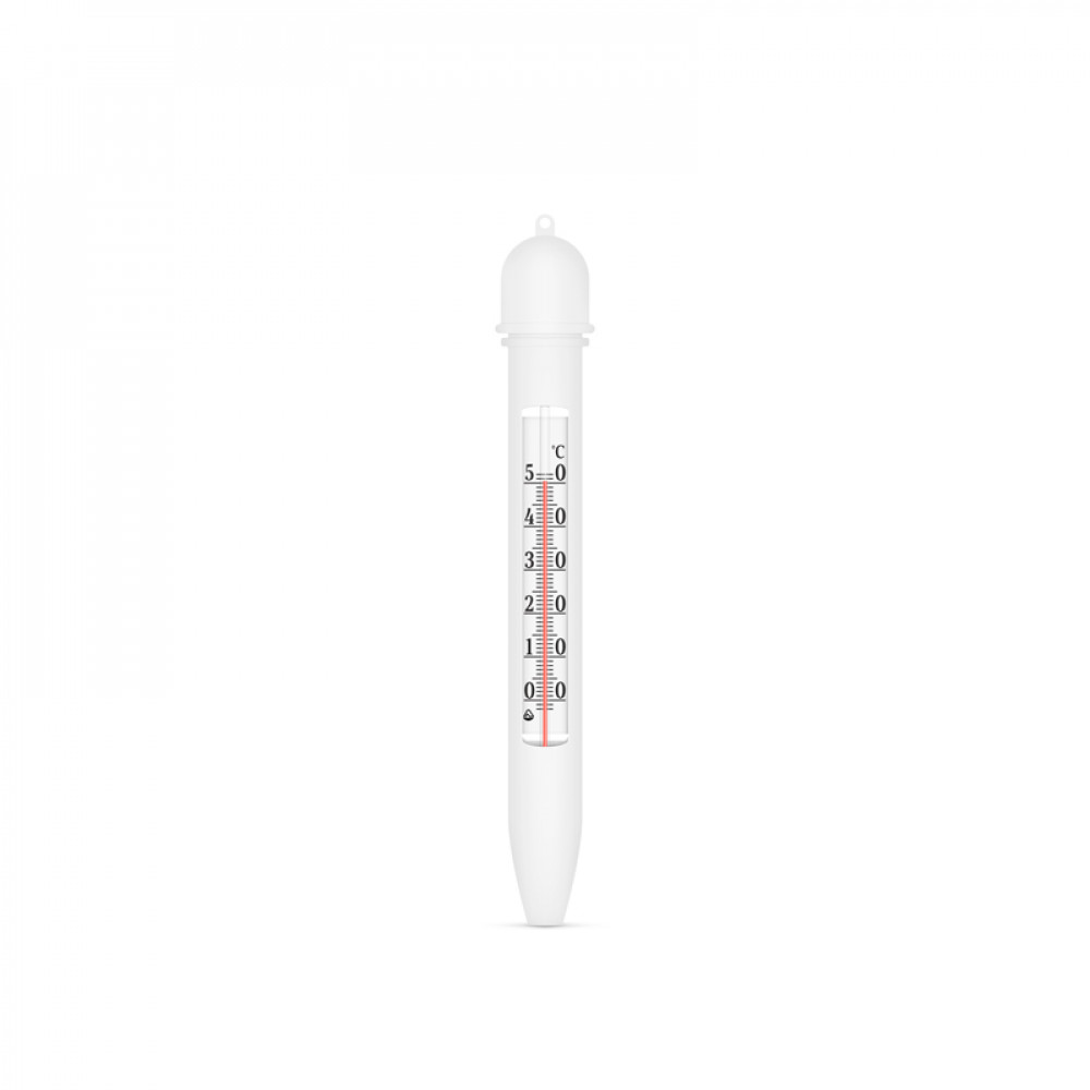 Термометр водный. Термометр помещен в пластиковый защитный корпус, в верхней части термометра есть отверстие для более удобной фиксации в сосуде. Применяется для измерения температуры воды.