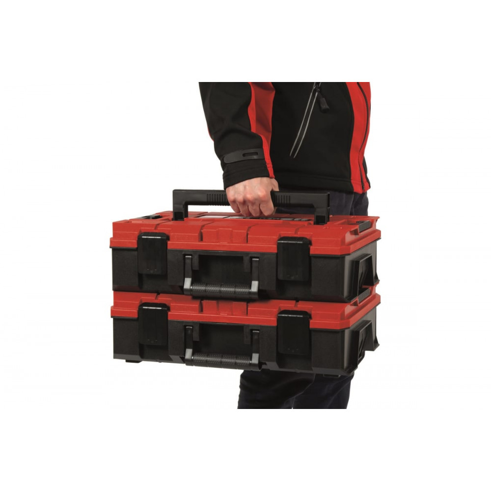 Удобство использования кейса достигается благодаря возможности открывать сложенные друг на друга кейсы, что облегчает доступ к нужным инструментам и аксессуарам. Эргономичные складные ручки обеспечивают комфортное ношение и транспортировку кейса.