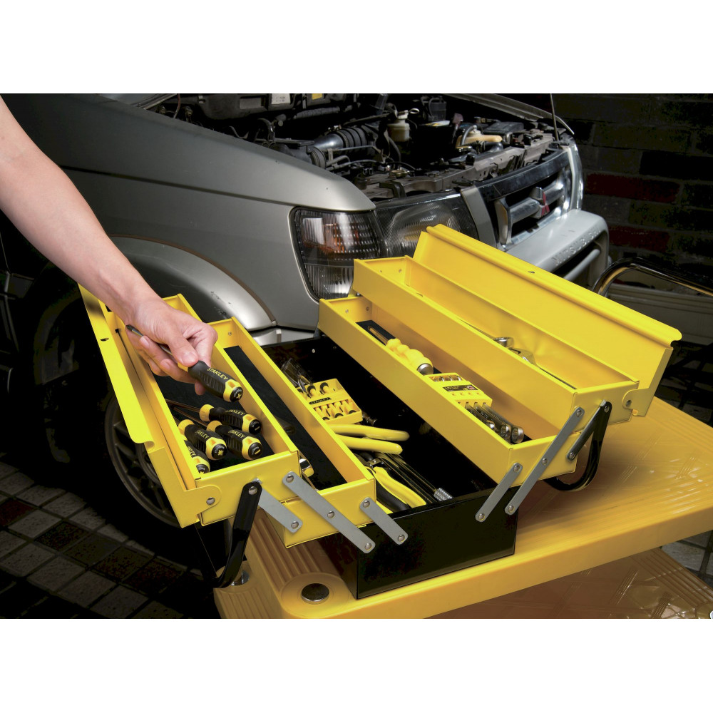 Ящик 1-94-738 Expert Cantilever от бренда STАNLEY оснащен 5-ю раскладными секциями. Обладает большим объемом и быстро раскладывается. Материал изготовления – качественный металл, устойчивый к коррозии. Складная ручка обеспечивает полный доступ к содержимому всех секций. Конструкция ящика исключает защемление пальцев.