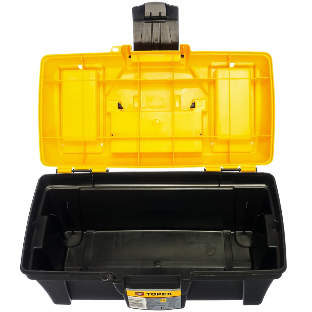 Ящик для инструмента TOPEX - это легкий и удобный ящик для инструмента. Изготовлен из прочной пластмассы. С 2 практичными органайзерами для хранения мелких элементов и удобной ручкой для переноски.