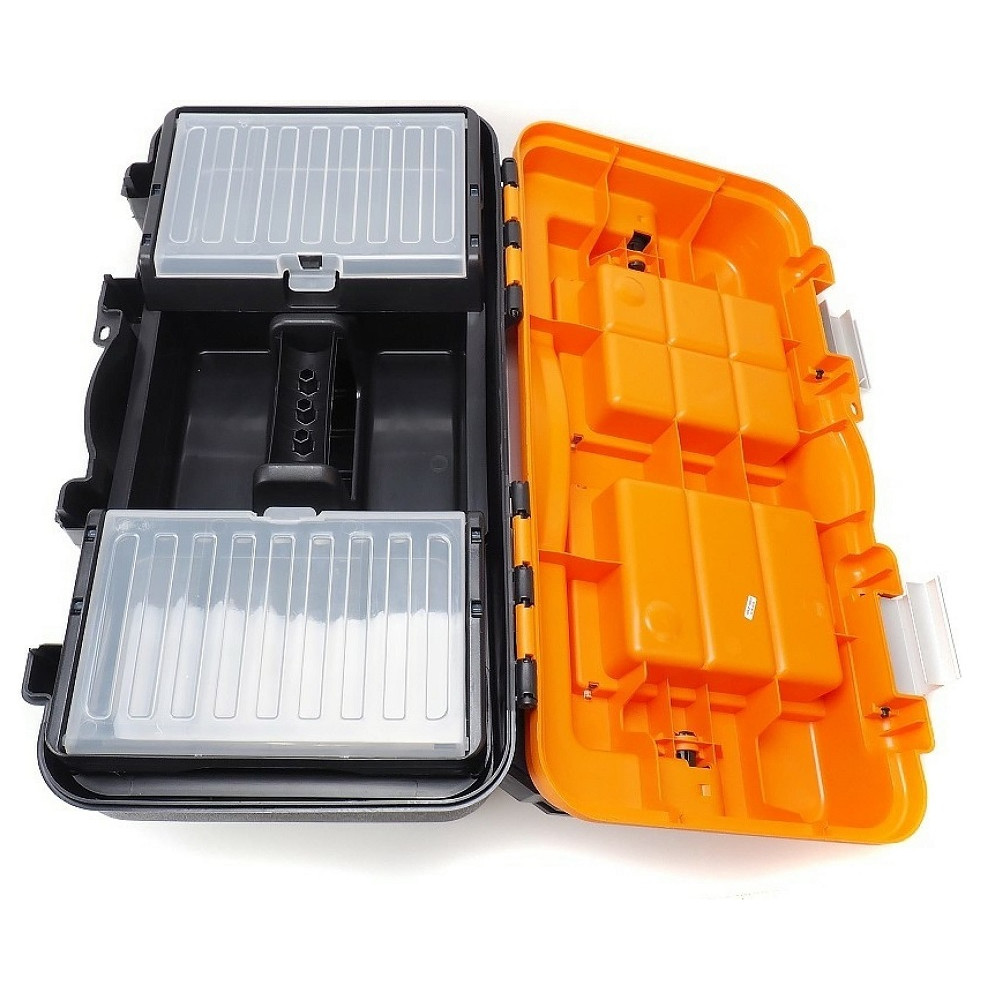 Недостатки: Как и у всех ящиков для инструмента один недостаток - слабые фиксаторы крышек органайзеров!