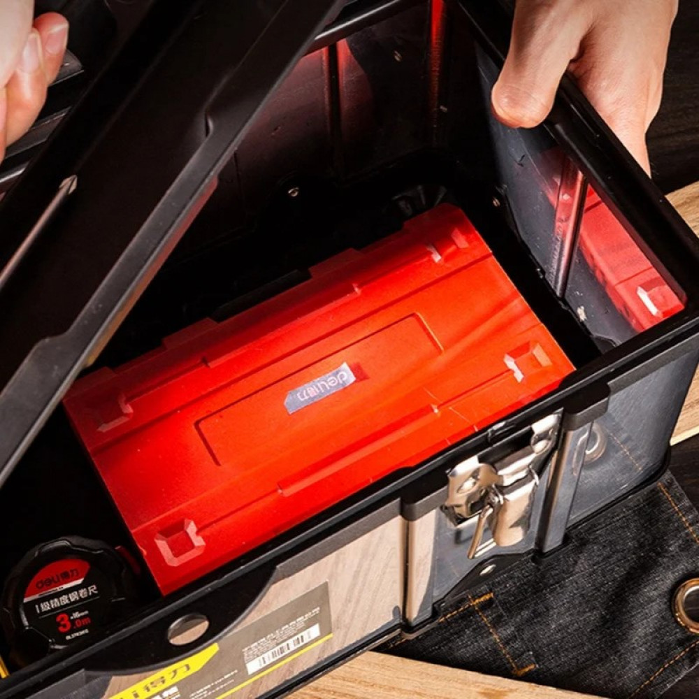 Ящик для хранения инструментов Deli DL432020 - создан для удобной и безопасной организации ваших рабочих принадлежностей. Он прекрасно подойдет как профессиональным мастерам, так и домашним умельцам, обеспечивая легкий доступ к инструментам и крепежу в любой ситуации.