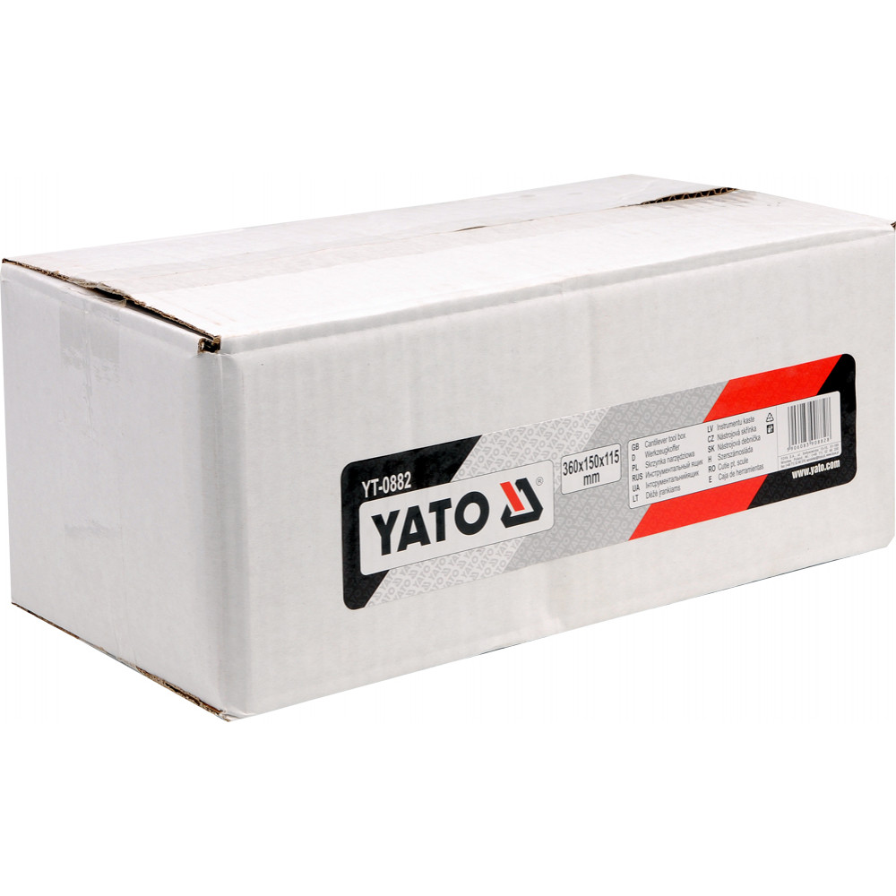 YT-0882 – это инструментальный металлический ящик от ТМ YATO. Данный раскладной ящик для инструментов имеет размеры 360х150х115мм и станет хорошим подспорьем для профессиональных мастеров. Внутри контейнера есть основное отделение и несколько съемных полок. Благодаря простой и удобной конструкции, доступ ко всем отсекам не составит никаких проблем.
