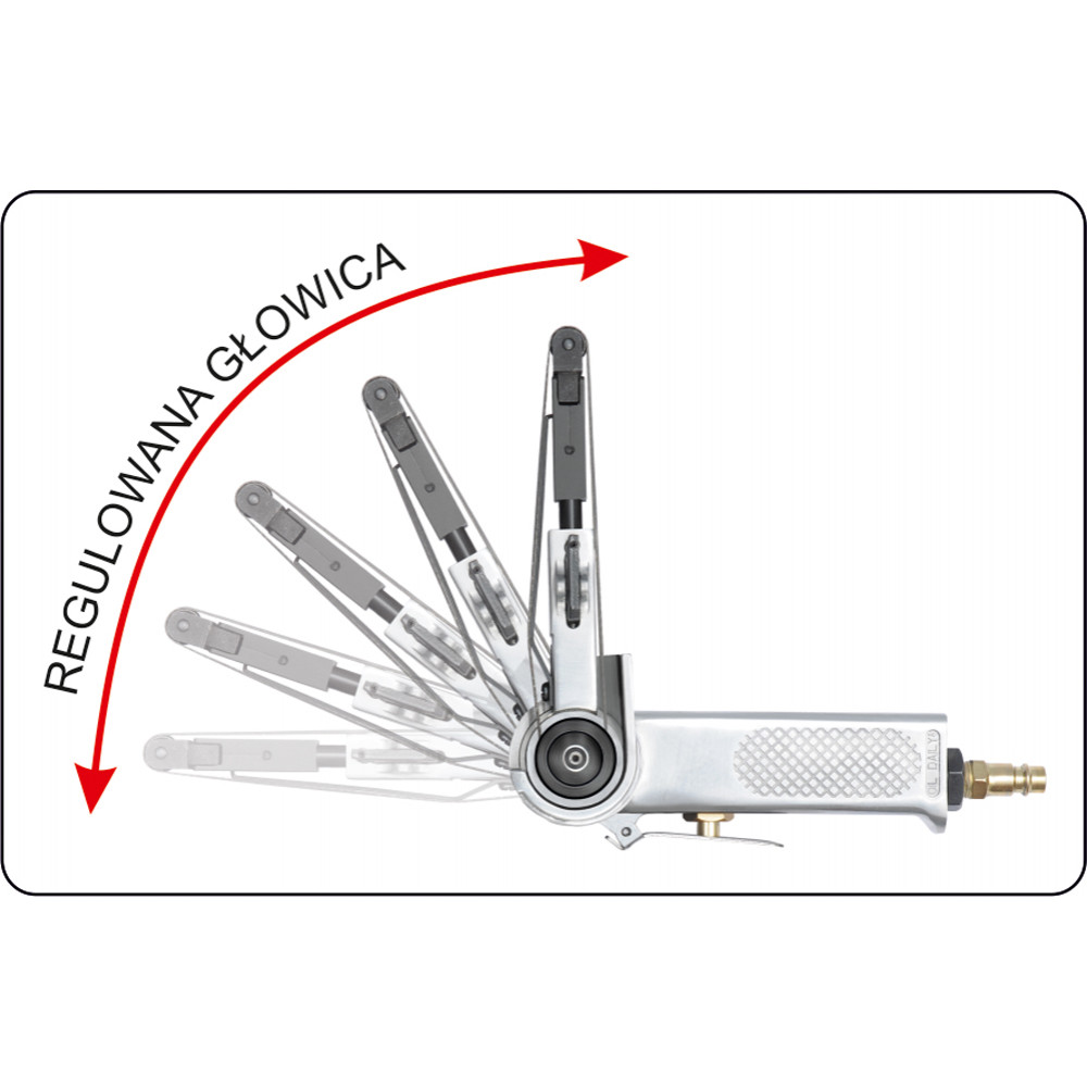 Шлифмашины имеет систему быстрого крепления ленты. Ее центрирование происходит автоматически. С помощью регулируемой рукоятки и системы выпуска отработанного воздуха, работа с инструментом отличается удобством и эффективностью.