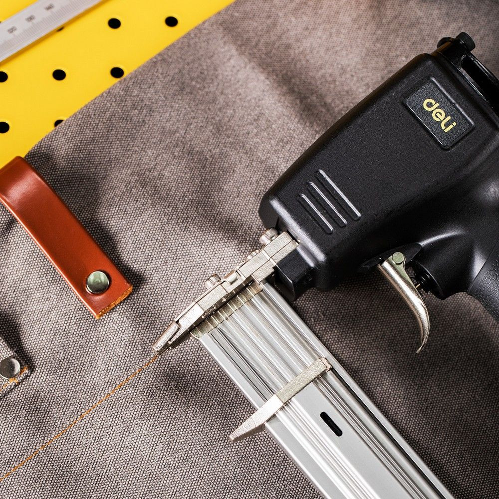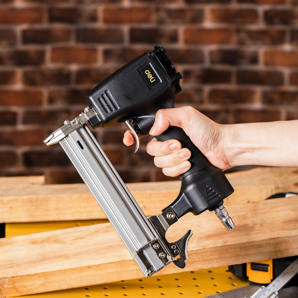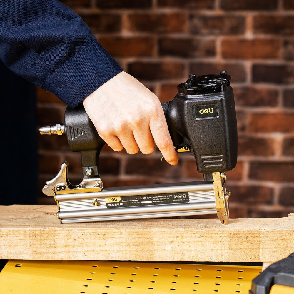 Пневматический гвоздезабивной пистолет DL-QDQ-F30B от ТМ DELI - идеальный инструмент для быстрого и надежного забивания гвоздей различных размеров (от 10 до 30 мм). Благодаря работе на сжатом воздухе, нейлер обеспечивает продолжительные интервалы между остановками и снижает риск пожаро- и взрывоопасных ситуаций на рабочем месте.