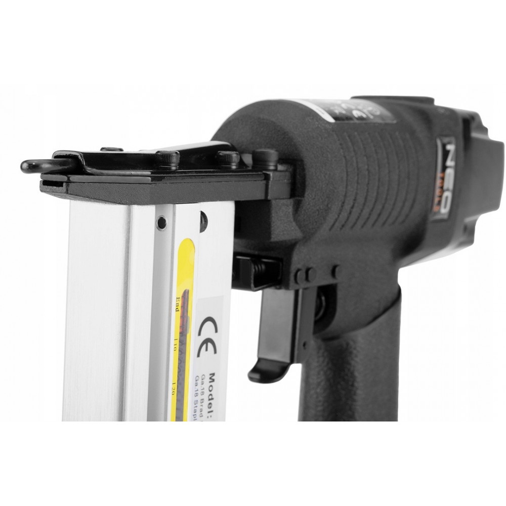 Пневмостеплер 14-570 от ТМ NEO подходит для различных обивочных и столярных работ. В качестве оснастки используются скобы типа 90 длиной от 10 до 40 мм (толщиной 1.25 x 1 мм) и гвозди типа 300 (толщиной 1.25 x 1 мм). Степлер оснащен обтекателем для смены направления воздушного потока, что позволяет работать в труднодоступных местах.