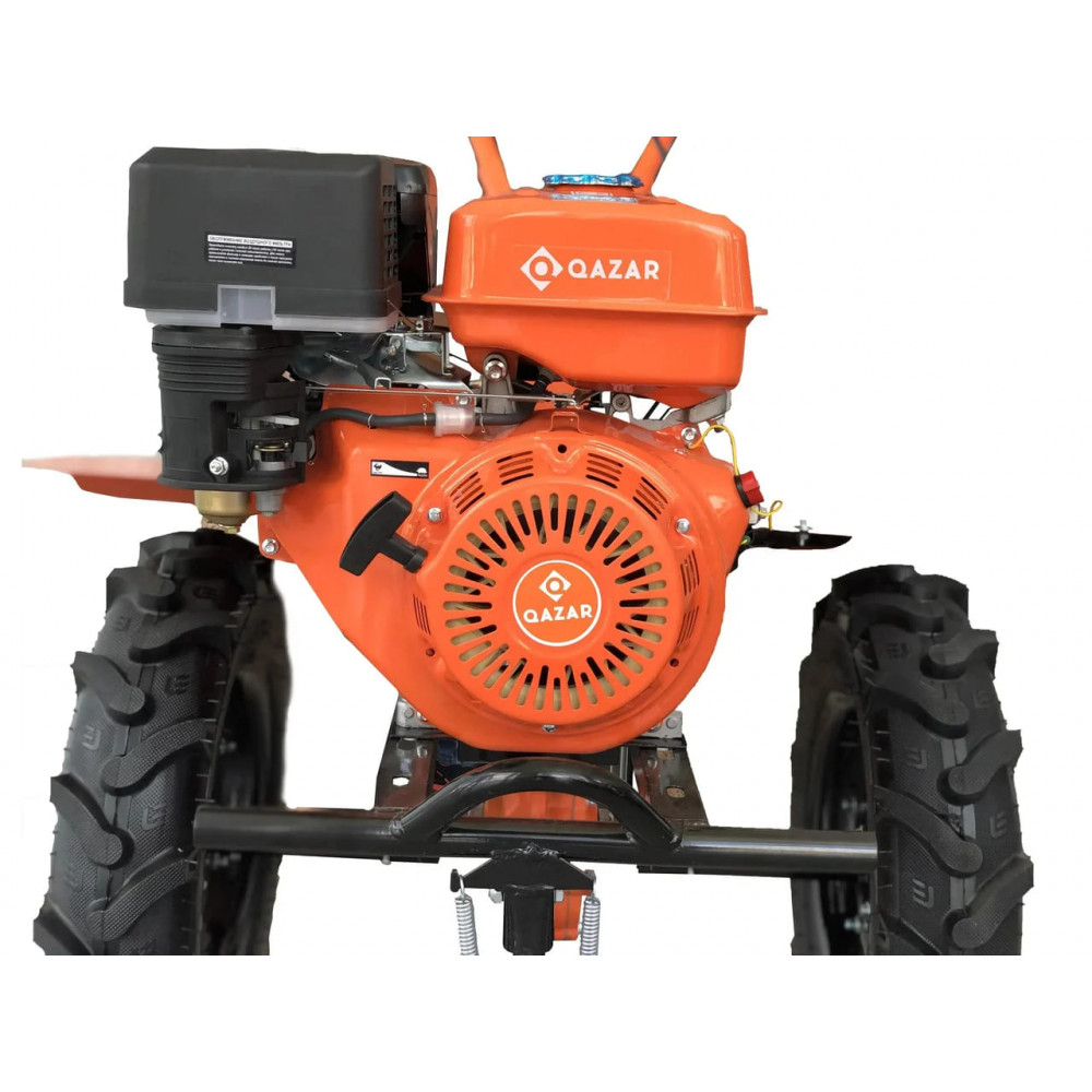Бензиновый мотоблок QAZAR MS135 предназначен для эффективной вспашки целинных земель. Он может также использоваться для коски сена, сбора урожая и качания воды с помощью навесного оборудования. Мотоблок оснащен мощным 4-х тактным двигателем 190F с номинальной мощностью 15 л.с., а также производительностью в 0,04 га/ч.м Ширина захвата составляет 135 см, а элементы управления расположены на рукоятке, обеспечивая более комфортное управление. Большие пневматические колеса мотоблока позволяют ему легко преодолевать любые неровности почвы. В передней части мотоблока расположена откидная стояночная опора, которая обеспечивает безопасную работу мотоблока.
