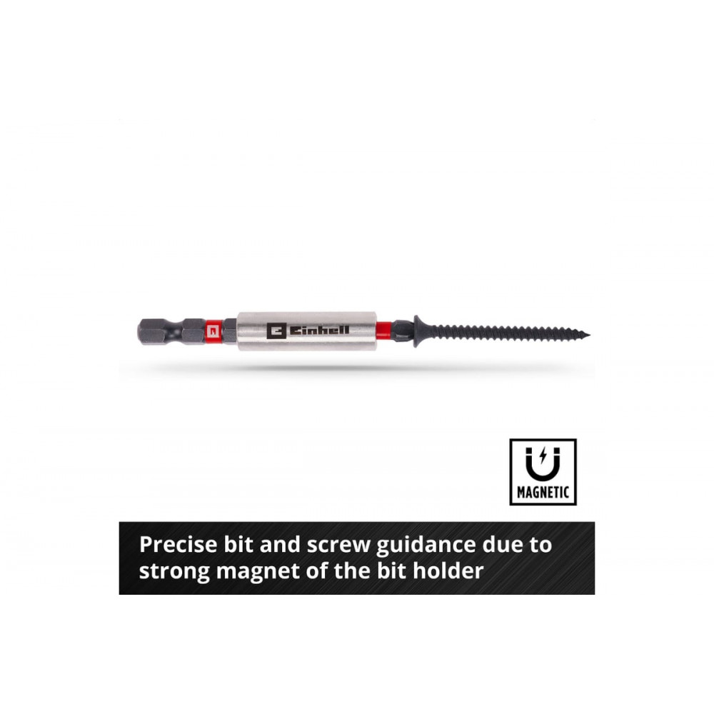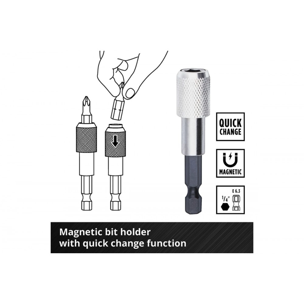 Магнитный битодержатель с функцией быстрой замены биты делает работу более удобной и эффективной.