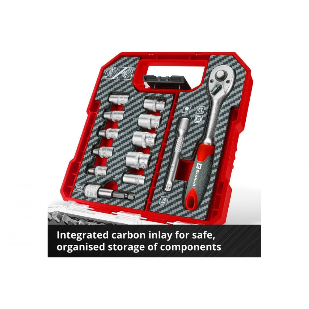 Благодаря переставляемым держателям бит и клипсе с автоблокировкой, вы сможете легко организовать внутреннее пространство и обеспечить надёжную фиксацию крышки.