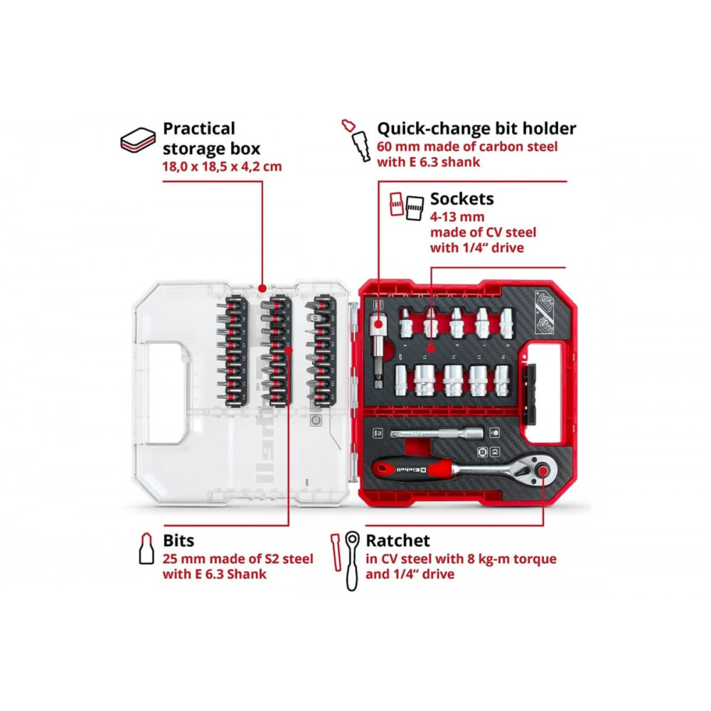 Набор 109022 бит и головок 37 предметов, Einhell