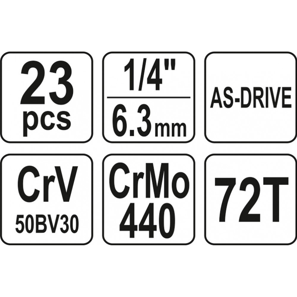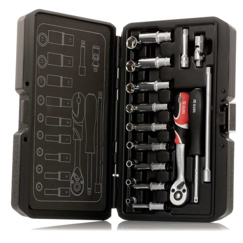 Набор YT-14451 торцевых головок 1/4" с инструментом, 23 предмета YATO