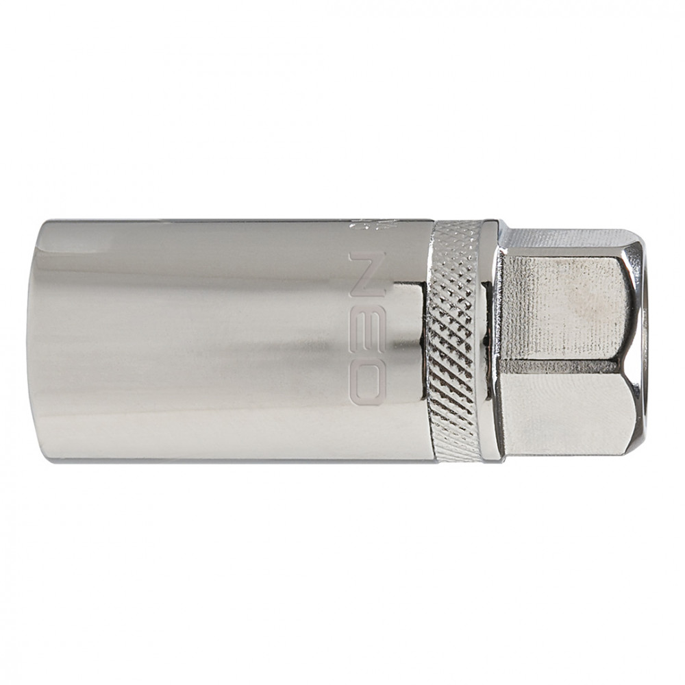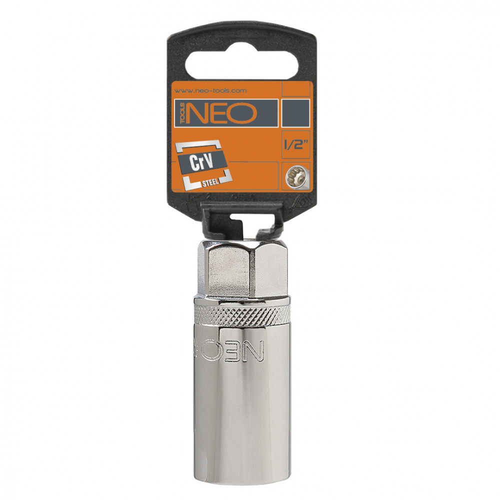 Головка сменная свечная 1/2" NEO изготовлена из прочной хромованадиевой стали. Магнитный фиксатор предотвращает выпадение свечи во время монтажа. Качество инструмента подтверждено сертификатом TÜV и 25-летней гарантией производителя.