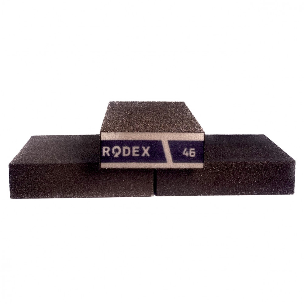 Губка RODEX шлифовальная 68х98х25 зерно 46 ZDP1046 подходит для работы с деревом, металлом, пластиком, камнем и другими материалами.