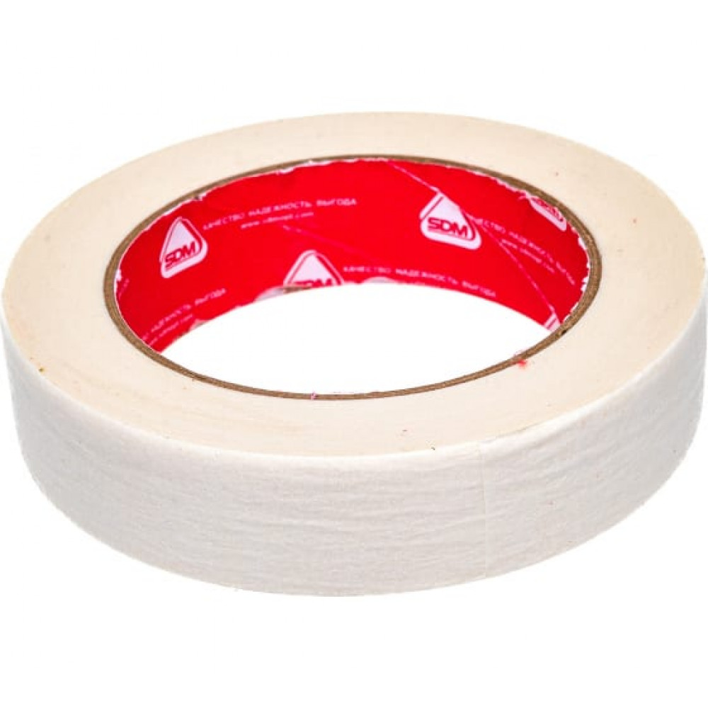 Малярная лента 25мм х 50м(34) SDM (RS) применяется при проведении малярных, штукатурных работ и лакировке внутри помещений. Его наклеивают на участки, которые необходимо защитить от загрязнений при нанесении составов. Скотч может использоваться для определения границы покраски на стене, потолке или окне, а также для фиксации укрывного материала, например, полиэтилена, перед распылением красящего состава краскопультом.