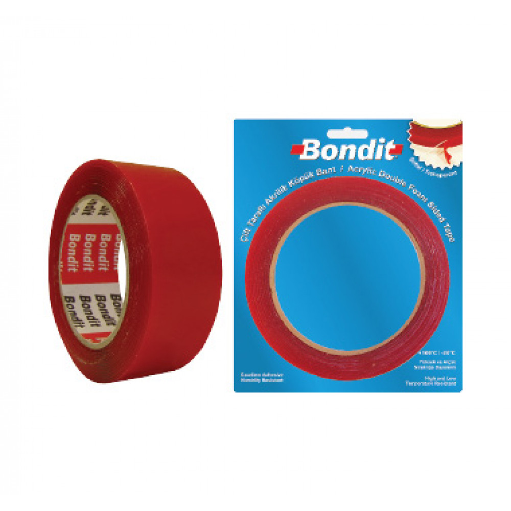 Акриловый двухторонний скотч BONDIT предназначен для надежного склеивания автомобильных деталей, аксессуаров, эмблем и логотипов из меттала, дерева, пластмассы, а также стекла. Часто используется при монтаже и ремонте вентиляционных панелей и каналов, грузовых автомобилей и автобусов.