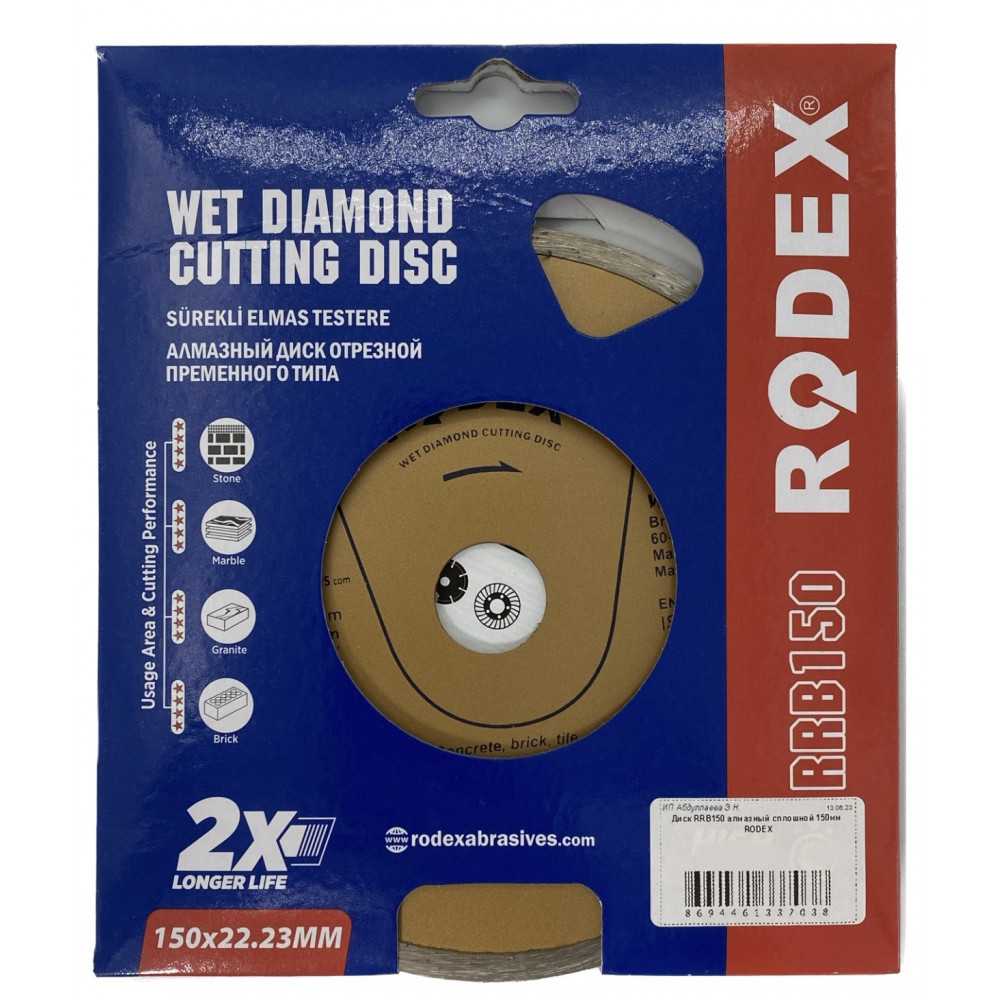 Диск RRB150 алмазный сплошной 150 мм RODEX