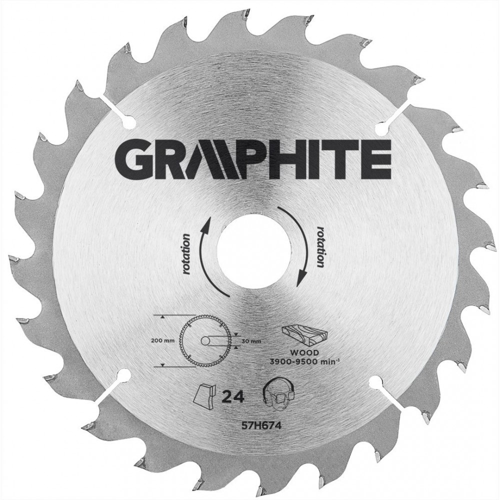 Пильный диск 57H674 от GRAPHITE предназначен для работы с материалами на основе древесины: фанера, древесностружечная плита, ДВП. Материал изготовления – марганцевая сталь MN65, обеспечивающая высокую износостойкость и долгий срок службы. Зубья имеют твердосплавные напайки из карбида YG6A. Диск комплектуется переходниками, с помощью которых полотно может использоваться с различными моделями пил.