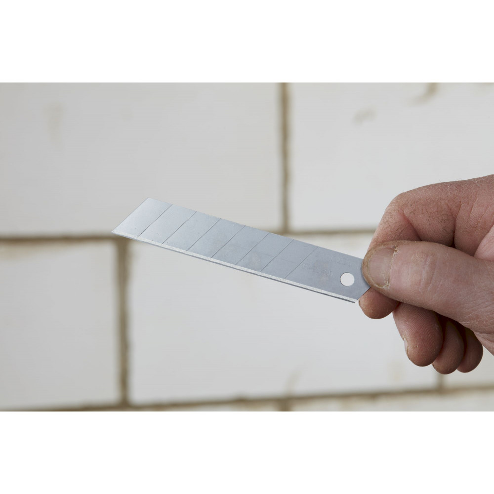 Комплект лезвий для ножей 0-11-301 включает в себя 10 элементов шириной 18 мм с семью сегментами, которые можно отламывать.