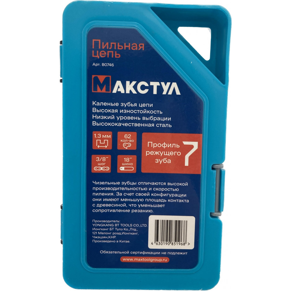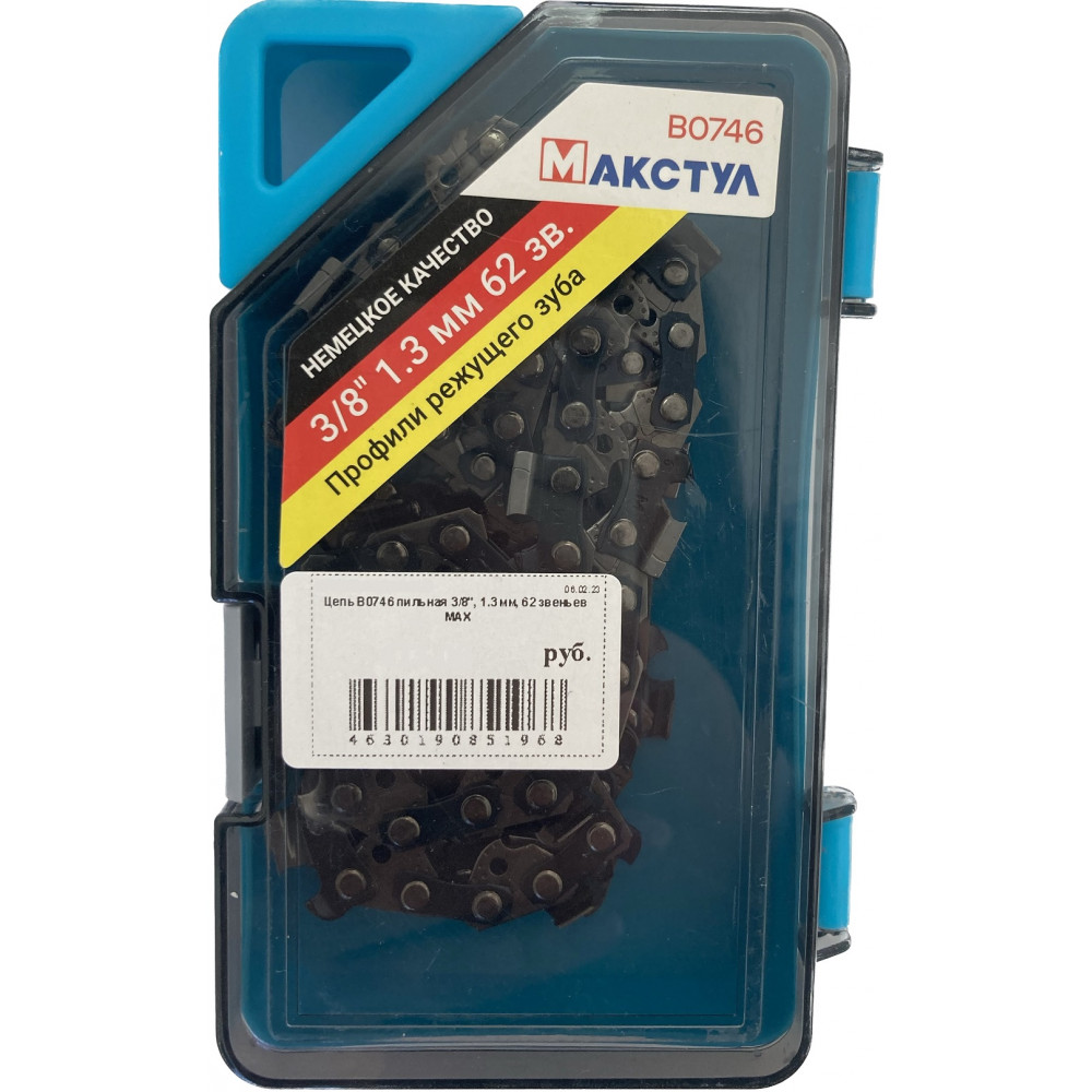 Цепь B0746 пильная 3/8", 1.3 мм, 62 звеньев MAX