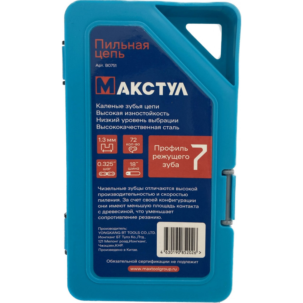 Цепь MAXTOOL предназначена для замены изношенного элемента цепной пилы и подходит для различных работ по распилу древесины, включая валку деревьев. Она изготовлена из высококачественных материалов, что улучшает линию реза и скорость пиления. Для продления срока эксплуатации и обеспечения нормальной работы цепи необходимо регулярно смазывать и затачивать ее зубцы.