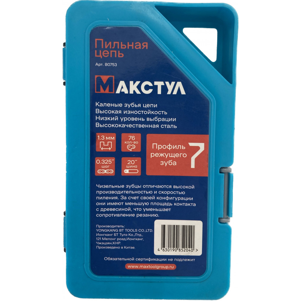 Цепь MAXTOOL предназначена для замены изношенного элемента цепной пилы и подходит для различных работ по распилу древесины, включая валку деревьев. Она изготовлена из высококачественных материалов, что улучшает линию реза и скорость пиления. Для продления срока эксплуатации и обеспечения нормальной работы цепи необходимо регулярно смазывать и затачивать ее зубцы.