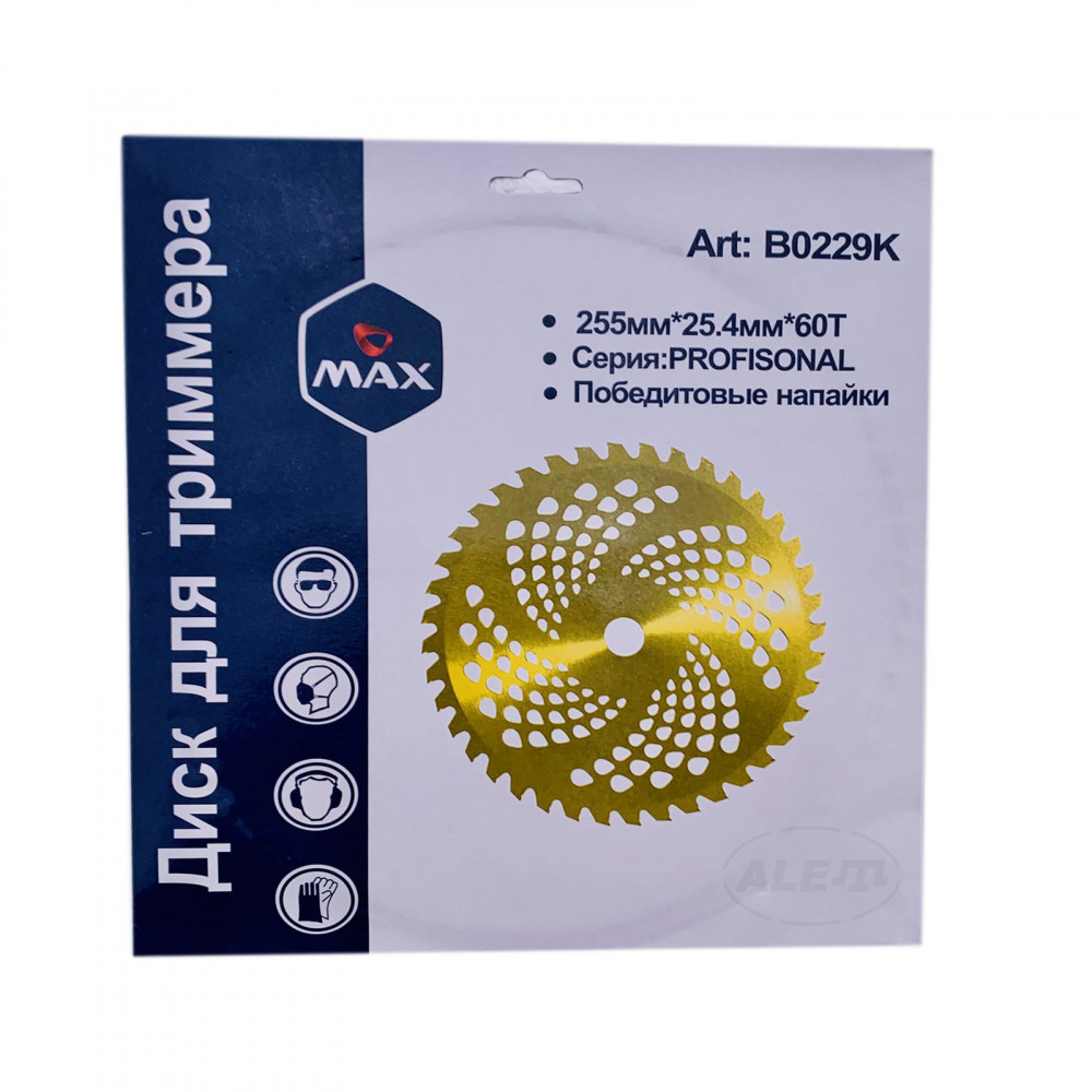Диск B0229K для триммера диаметром 255 мм и посадочным отверстием 25,4 мм, с 60 зубьями — надежный и удобный инструмент от производителя MAXTOOL.