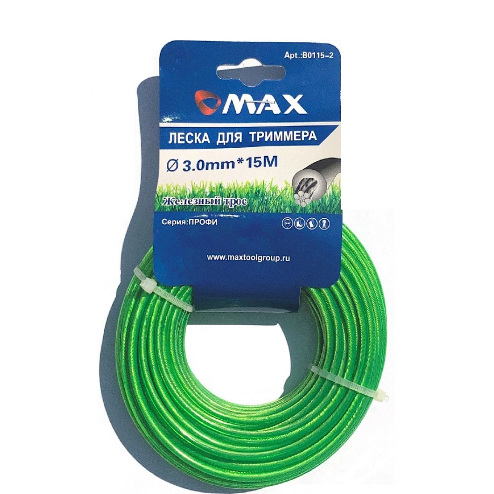 Леска B0115-2 для триммера 3,0 мм x 15 м, сечение-железный трос с нейлоновой оболочкой, MAX