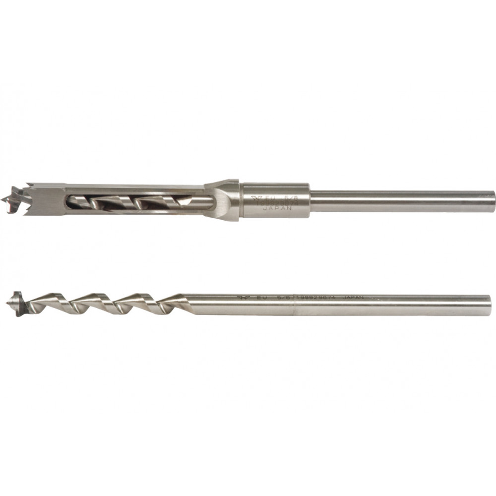 Основная особенность, присущая японским образцам — конструкция сверла с центрирующим острием и с одной режущей кромкой. Такое сверло имеет одну, но широкую и глубокую винтовую канавку для удаления стружки, которая обеспечивает надежный отвод древесных отходов и высокую производительность работы. Этот дизайн создавался с учетом специфики использования долбежных сверл в Японии, где в ходу в основном мягкие породы древесины. Несмотря на кажущееся противоречие, на твердых породах такая конструкция также ведет себя отлично. Немало важно и то, что заточка сверл с одной режущей кромкой проще.