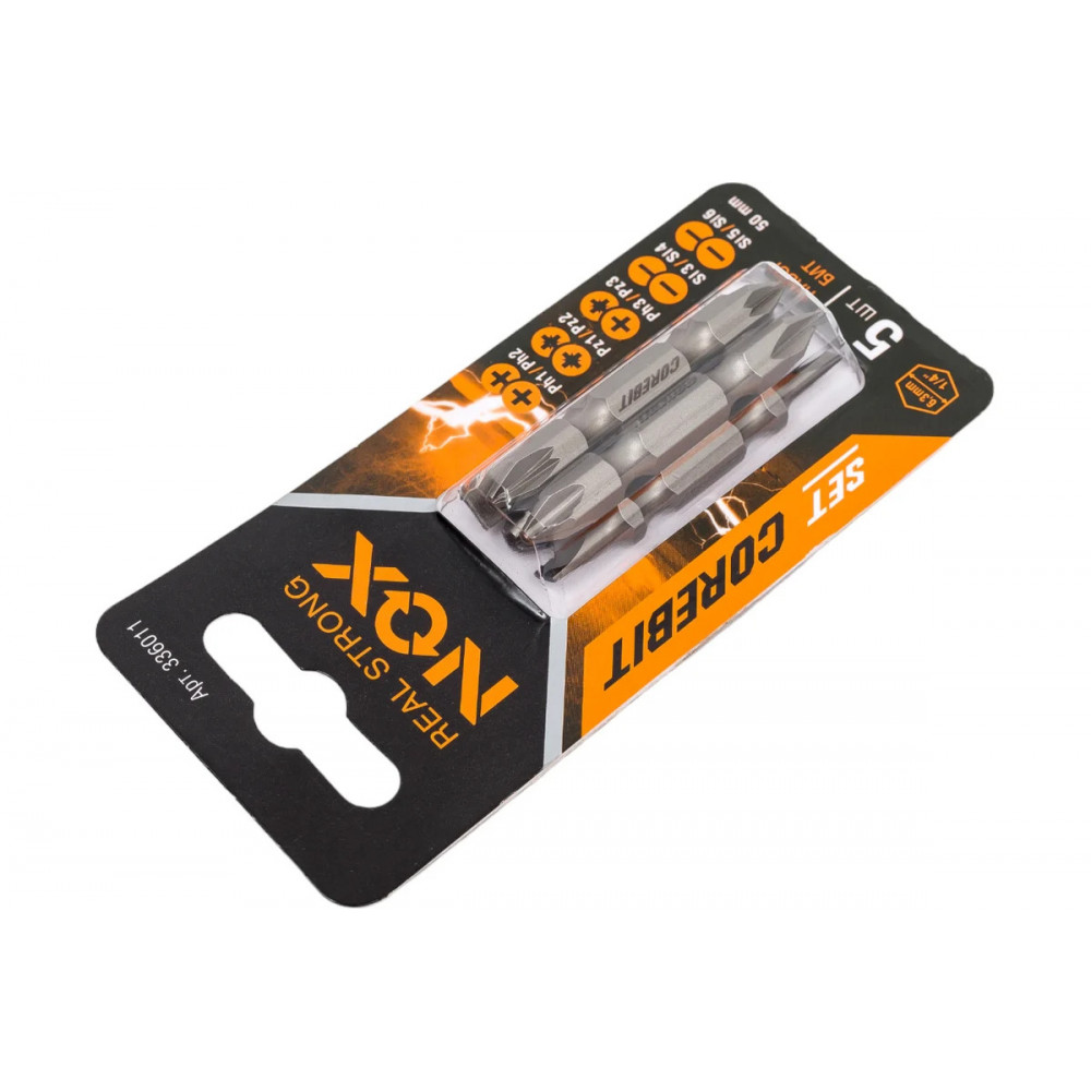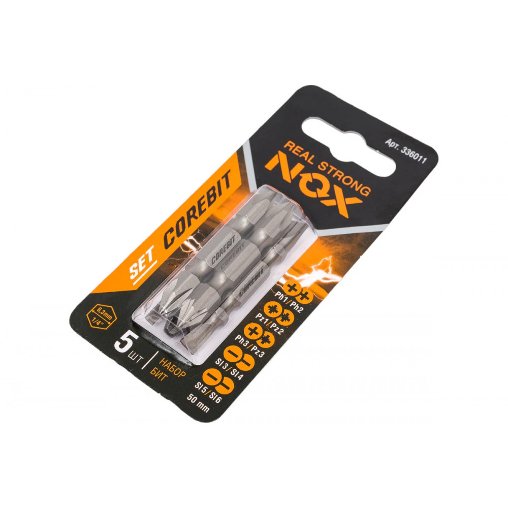 Набор бит 336011 COREBIT SET5 2X PH1-PH2, PZ1-PZ2, PH3-PZ3, Sl3-Sl4, Sl5-Sl6x50 мм, 5 шт карта NOX