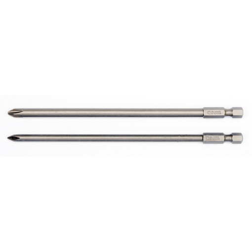 Существуют также крестообразные биты с 4 дополнительными диагональными ребрами меньшего размера. Эти биты обозначаются PZ, т.е. Pozidrive. Такие биты имеют еще большую площадь сцепления с крепежом и применяются в трудных случаях, например, когда нужно выкрутить застрявшие в материале или ржавые шурупы. Биты PZ также имеют размеры от 0 до 4, самые известные 2 и 3.