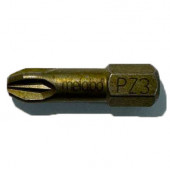 Существуют также крестообразные биты с 4 дополнительными диагональными ребрами меньшего размера. Эти биты обозначаются PZ, т.е. Pozidrive. Такие биты имеют еще большую площадь сцепления с крепежом и применяются в трудных случаях, например, когда нужно выкрутить застрявшие в материале или ржавые шурупы. Биты PZ также имеют размеры от 0 до 4, самые известные 2 и 3.