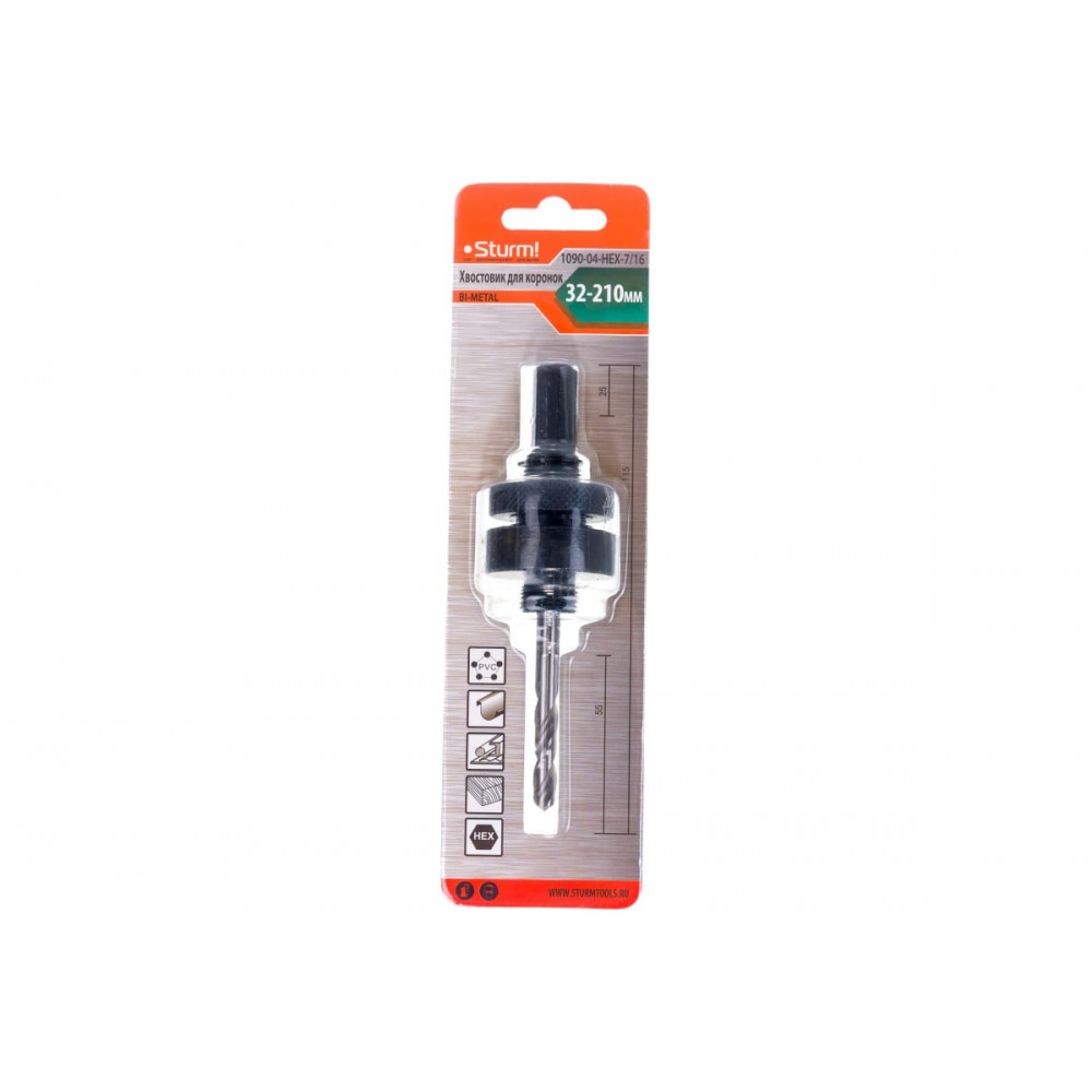 Он подходит для коронок с соединением 7/16 дюйма и имеет диапазон диаметров от 32 до 210 мм.