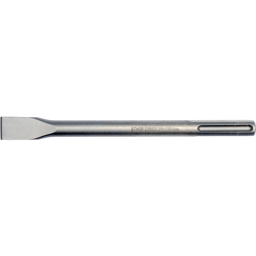 Плоский и узкий пробойник 23603 SDS-MAX от STHOR используется совместно с ручными перфораторами, и имеют длину 280 мм с размером 25х18 мм.