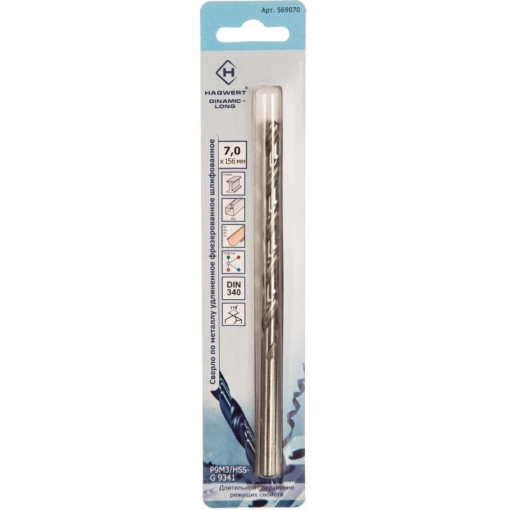 Сверло 569070 по металлу 7,0х156 мм Dinamic-Long, 1 шт Hagwert 7 156 1