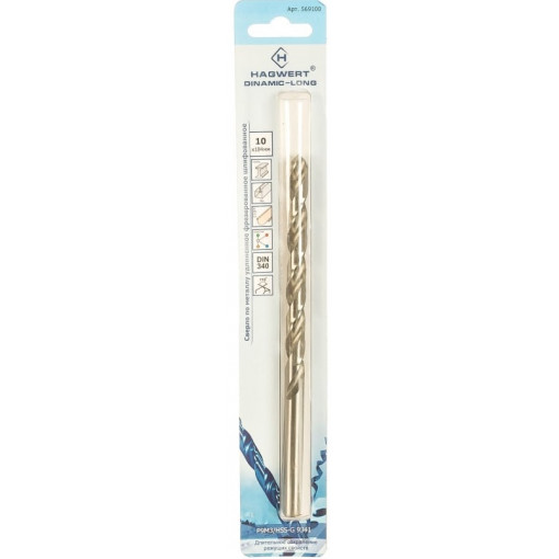 Сверло 569100 по металлу 10,0х184 мм Dinamic-Long, 1 шт Hagwert 10 184 1
