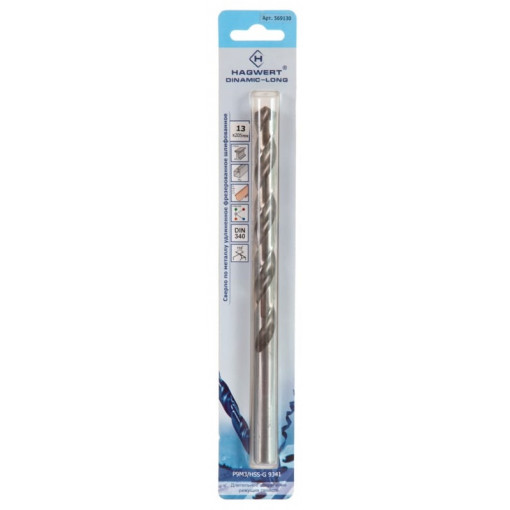 Сверло 569130 по металлу 13,0х205 мм Dinamic-Long, 1 шт Hagwert 13 205 1
