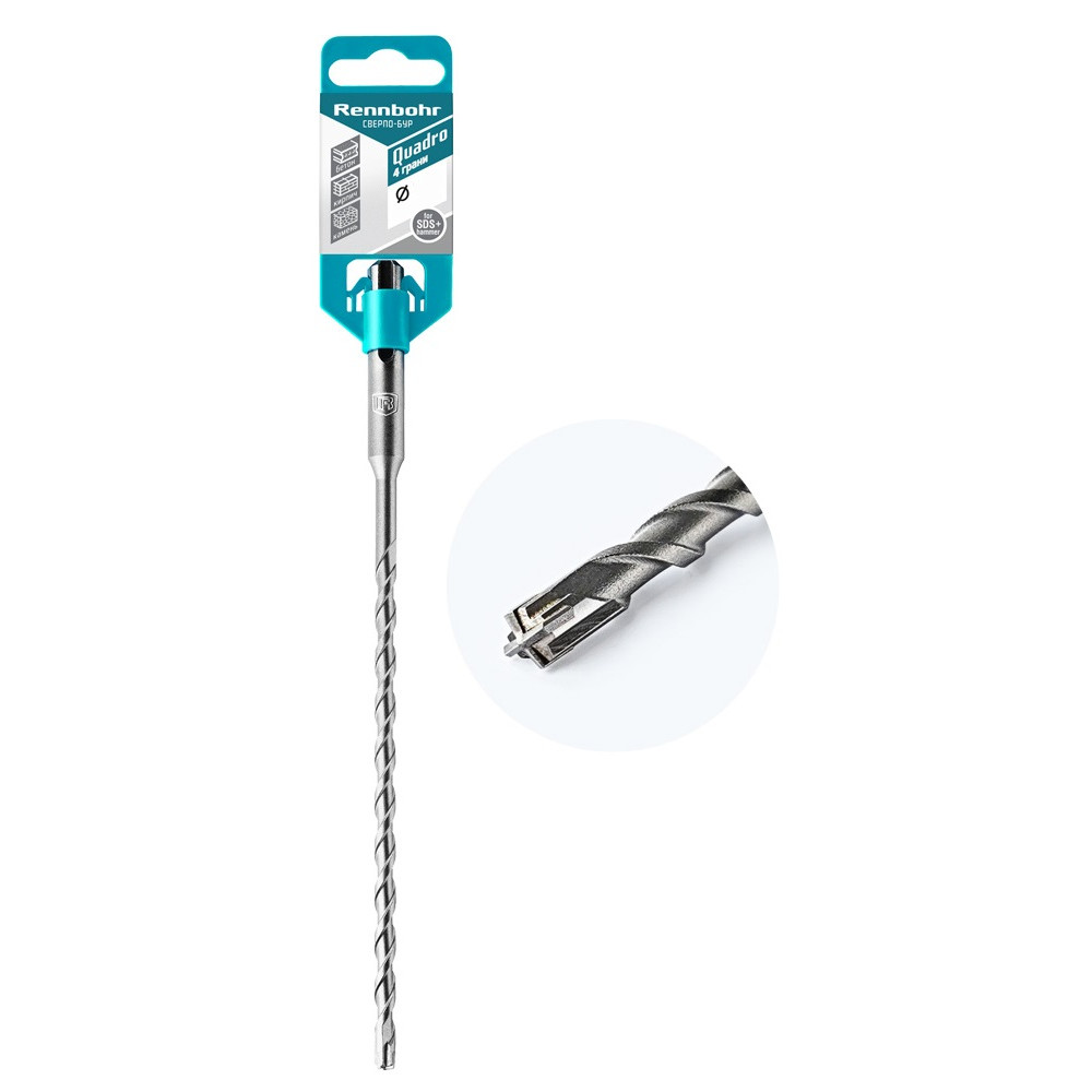 Бур Quadro RENNBOHR создан специально для работы с перфораторами, использующими систему крепления SDS+. Он идеально подходит для сверления армированного бетона, кирпича, природных камней и прочих особо прочных материалов. Бур может справиться с самыми интенсивными нагрузками благодаря своей высокой прочности на изгиб.