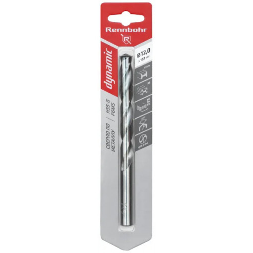 Сверло 675120 по металлу ЦХ,12,0х151мм, HSS-G, P6M5, 1шт/уп,RENNBOHR DYNAMIC CARD 12 151 1