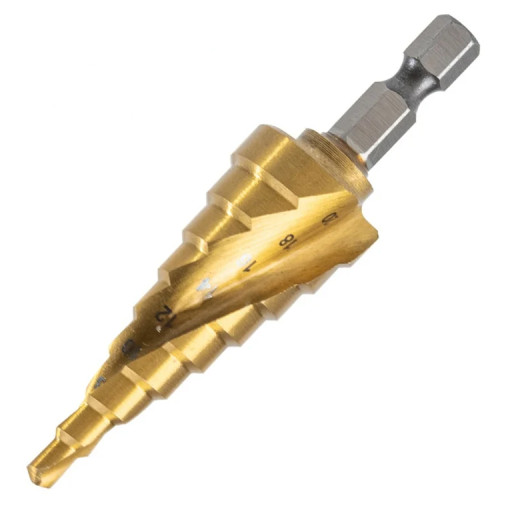 - Диапазон диаметров ступенчатых сверл, мм: 4-12