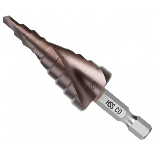 Сверло ступенчатое по металлу Deli DH-JTZ020-E1 (4-20мм, HSS 4341, спиральная канавка, шестигранный | 1 |