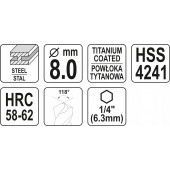 Сверло-метчик YT-44845 М8 HEX YATO | 51 | 1 |