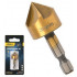 Зенкерная насадка с 5 режущими кромками из высококачественной быстрорежущей стали HSS для остроугольной зенковки, с винтом с внутренним шестигранником, для установки на спиральное сверло по дереву. Может также использоваться как упор глубины, просто повернуть зенкер.