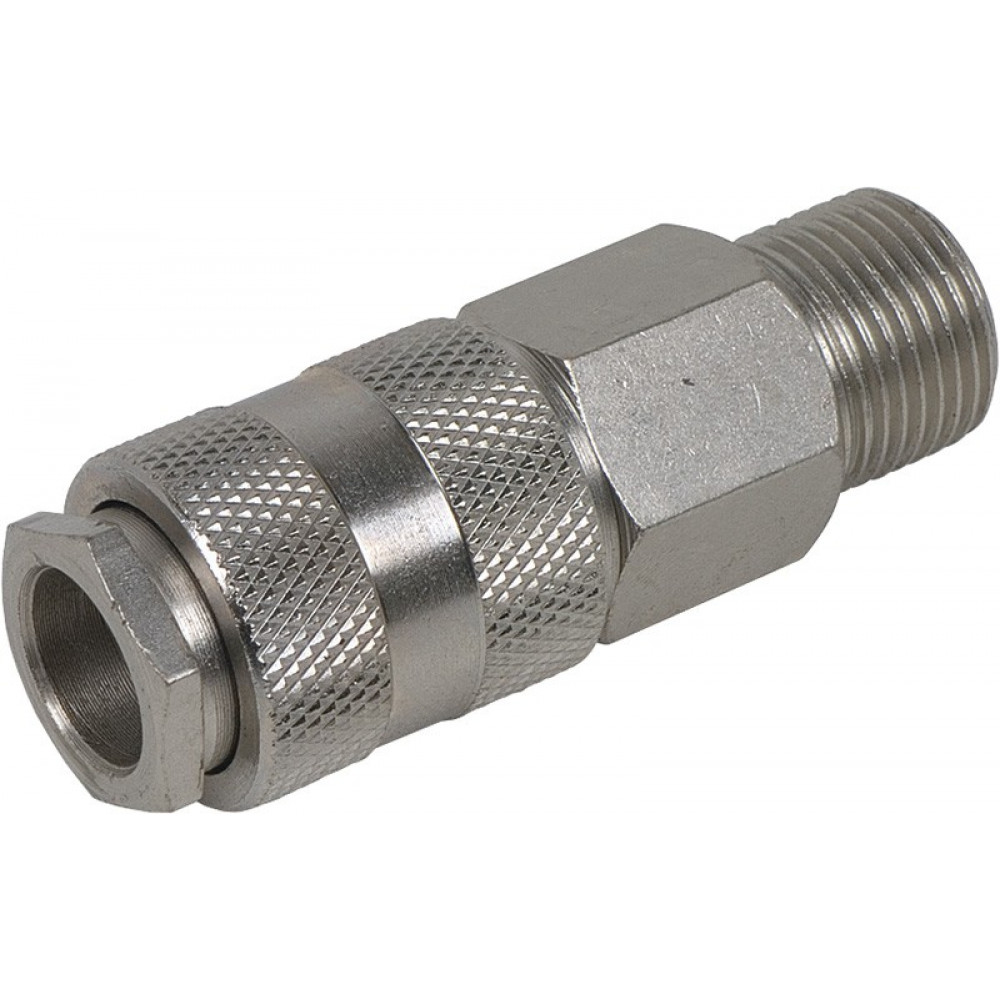 Данное быстросъемное соединение обладает клапаном и наружной резьбой равной 1/4 дюйма.