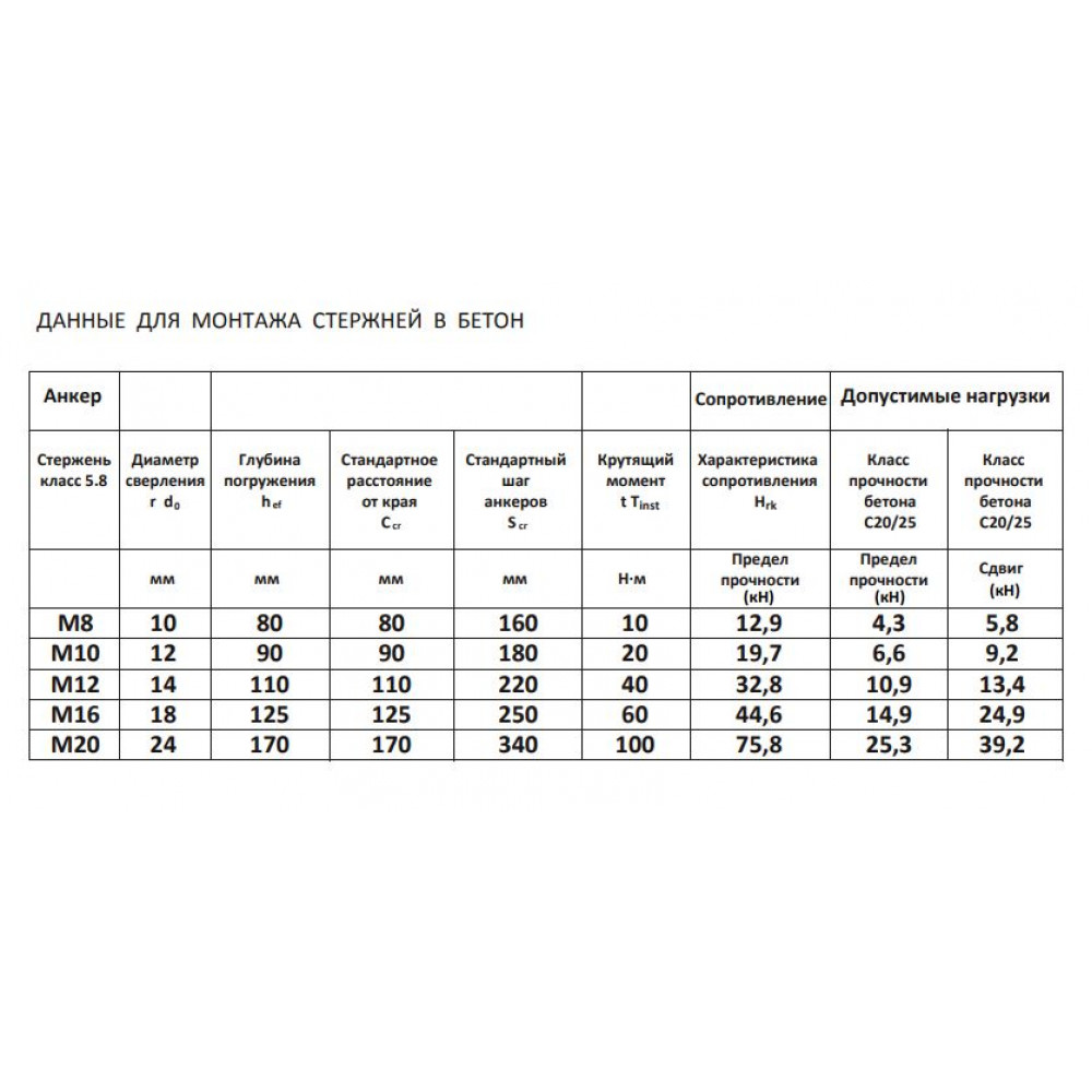 | Мин. вырывающая сила, кН (бетон В25) | 0,4 |